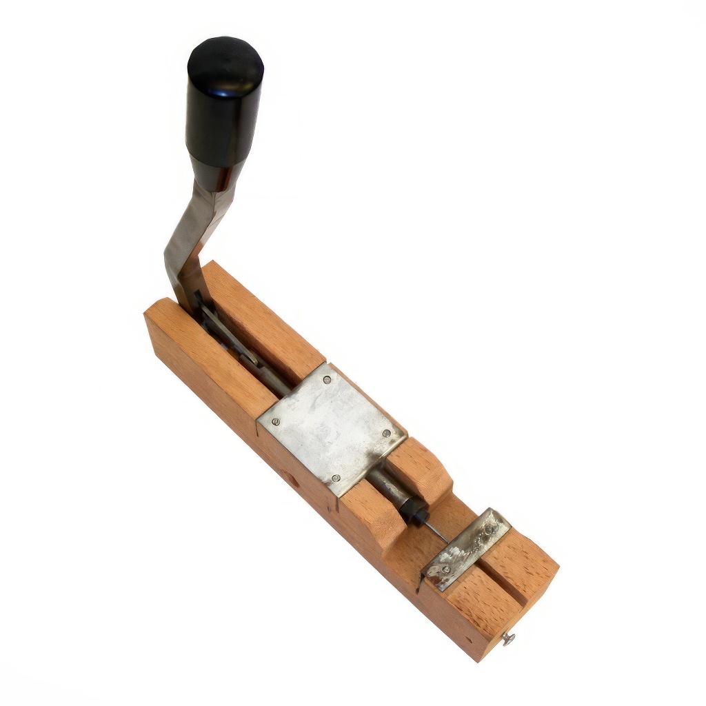Le type H plaira également par son entretien simple – l'aiguille de perforation est remplaçable, il suffit donc de la changer après des années d'utilisation, pas besoin d'acheter un nouveau perforateur complet. L'appareil est monté sur une base en bois stable qui peut être facilement vissée ou fixée avec un serre-joint à l'établi ou au plan de travail. Grâce à la hausses solide, le travail est sûr, rapide et précis.