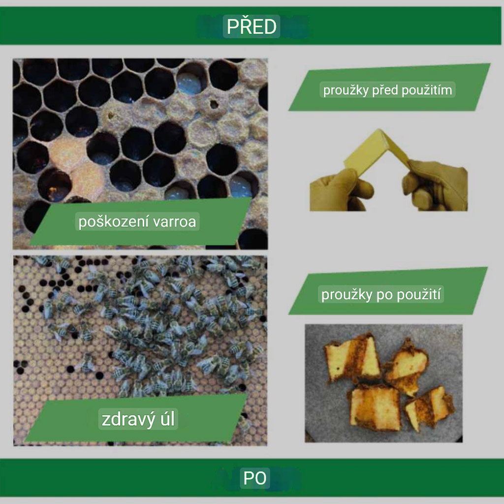 THYMOVAR® s'applique après la dernière récolte de miel, lorsque les températures journalières ne dépassent pas 30 °C. L'utilisation est simple et rapide : les bandelettes de THYMOVAR® sont placées sur les cadres supérieurs de la ruche. Bien que THYMOVAR® ait été développé en Suisse et soit utilisé dans 24 pays, il peut également être combiné avec des médicaments tchèques pour lutter contre la varroase.