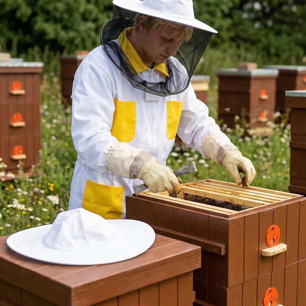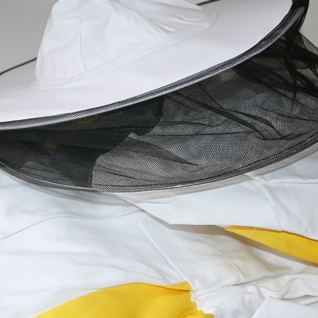 3. Couleur adaptée au travail au rucher : La combinaison de blanc et de jaune agit de manière neutre et n'irrite pas inutilement les abeilles. Cela contribue à maintenir un déroulement plus calme du travail.