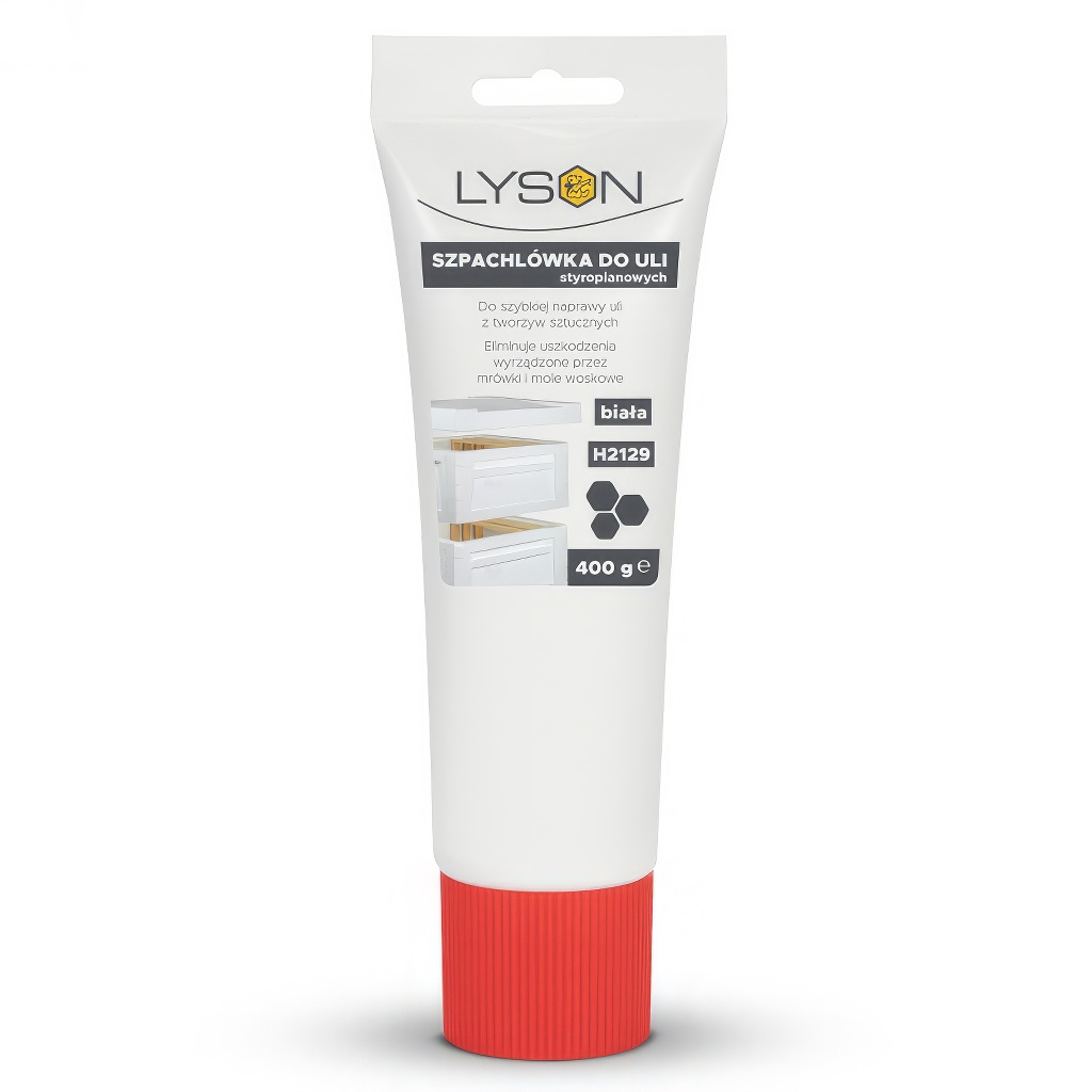 Colle conçue pour la réparation rapide des ruches en plastique. Élimine les dommages causés par les fourmis et la fausse teigne. Avant utilisation, malaxer bien le tube. Appliquer le mastic en le pressant dans la zone endommagée, lisser et laisser sécher. Épaisseur maximale de couche 5 mm. Pour les trous profonds, répéter le processus. Après durcissement, poncer la zone réparée jusqu'à ce qu'elle soit lisse et peindre. Le produit est composé de dispersion plastique, d'eau, de carbonate de calcium, de fibres, d'agents conservateurs et d'additifs.