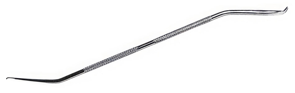 Conception pratique double face : Une extrémité forme une pointe en inox légèrement flexible (environ 2 mm), qui permet le prélèvement délicat des larves les plus jeunes. L'extrémité peut être légèrement ajustée selon les besoins – par exemple légèrement pliée ou retravaillée avec une lime diamantée pour correspondre à votre style de travail. L'autre extrémité est dotée d'une surface élargie, utile pour nettoyer confortablement les cupules des résidus de gelée royale, de cire ou de propolis.
