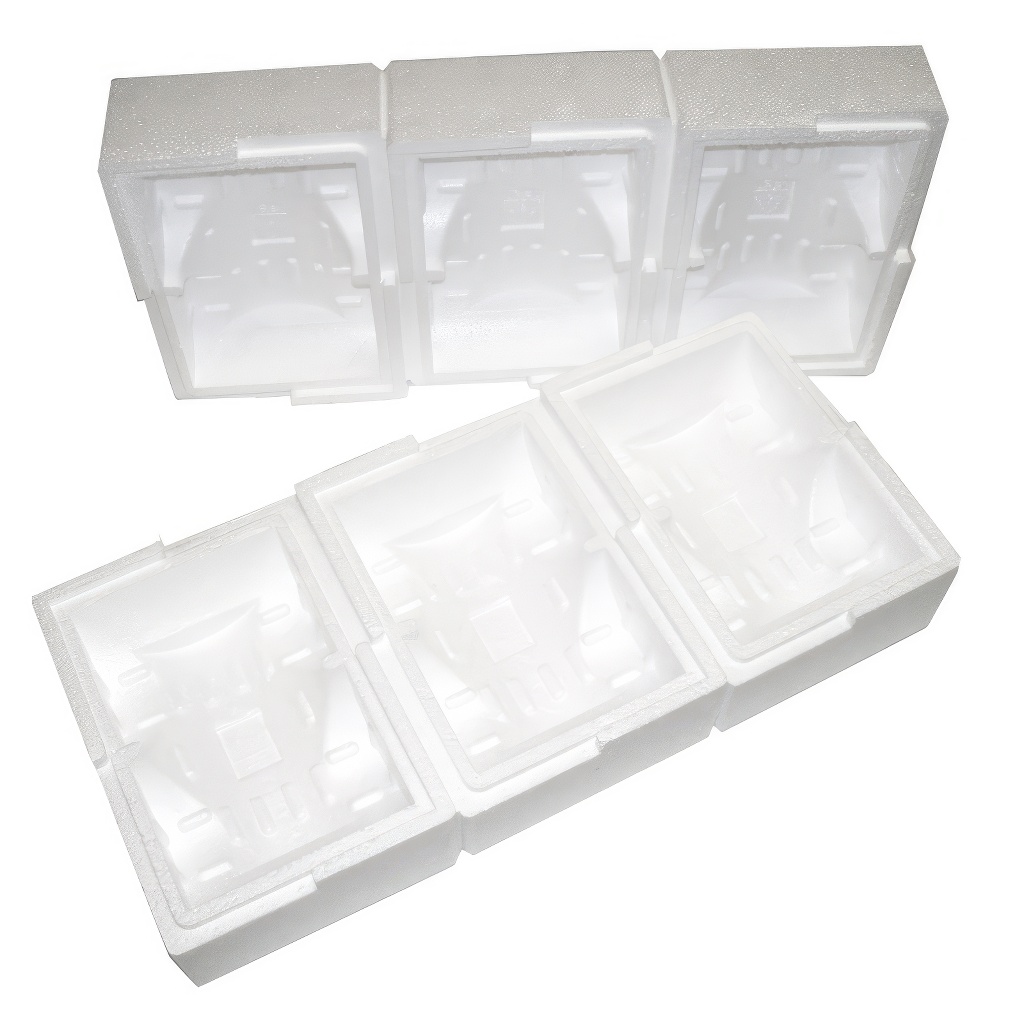 Emballages en polystyrène pour un transport facile du miel. Emballage pratique en polystyrène pour trois bocaux d'un kilogramme ou six bocaux de 500 grammes.