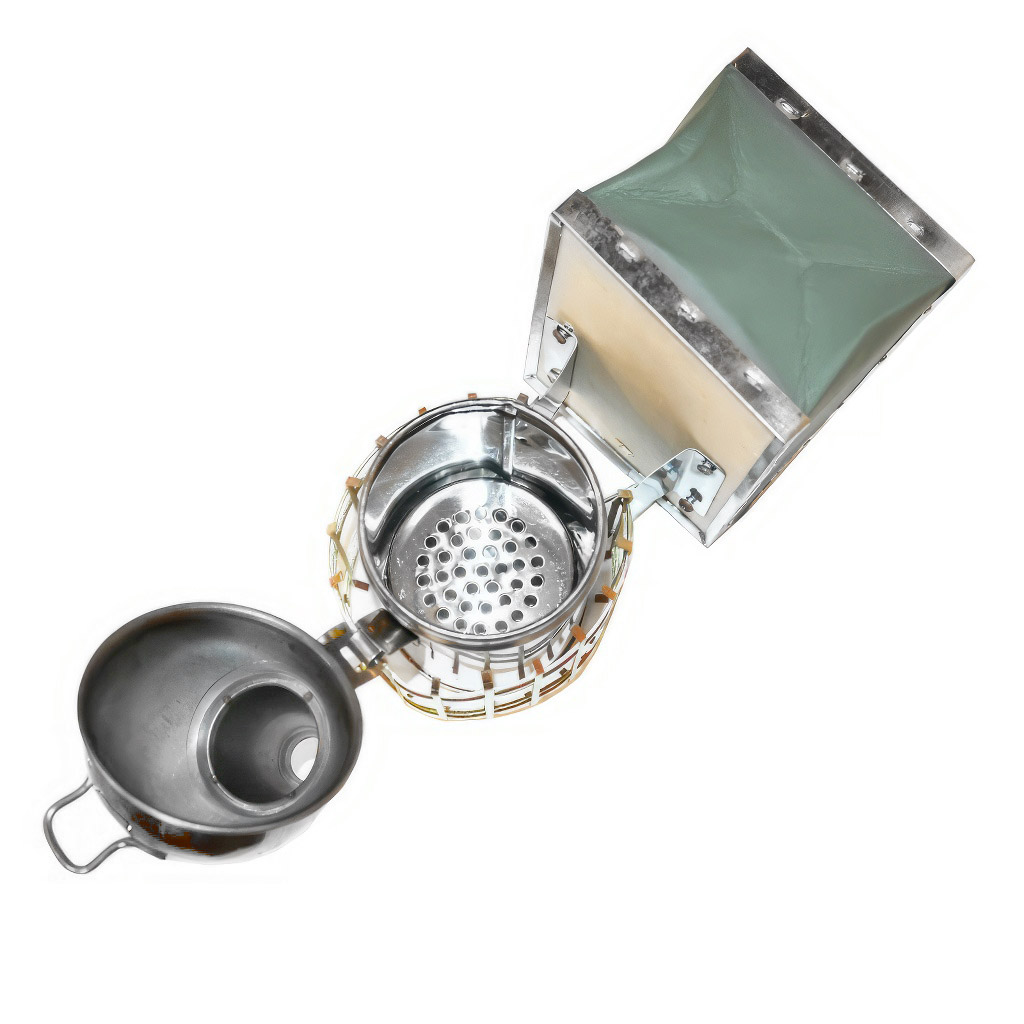 Ce petit enfumoir apicole est fabriqué en acier inoxydable, qui résiste bien à la corrosion, dure longtemps et s'entretient facilement. À l'intérieur se trouve un insert amovible pratique, grâce auquel vous pouvez rapidement vider les cendres après le travail et nettoyer le corps de l'enfumoir. Pour protéger les mains, l'enfumoir est équipé d'une grille de sécurité extérieure qui réduit le risque de brûlure lors de la manipulation normale. Un soufflet en cuir de qualité assure un apport d'air fiable et une production de fumée régulière.