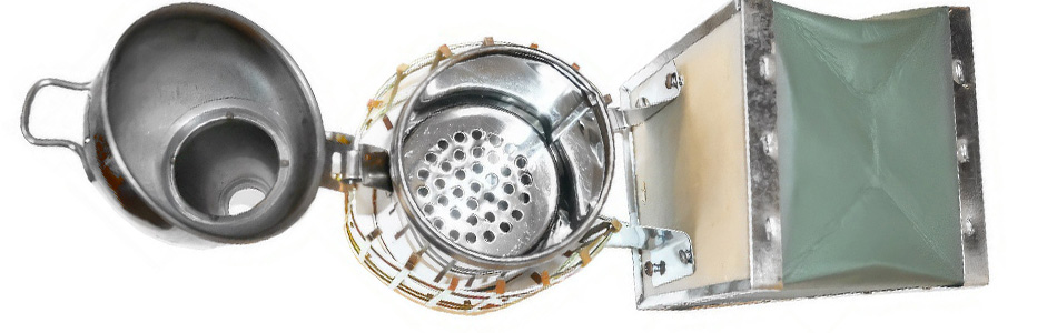 Ci-dessous vous trouverez les dimensions claires et les spécifications. Grâce à sa petite taille, l'enfumoir se transporte facilement et ne prend pas beaucoup de place, tout en accomplissant exactement ce que l'apiculteur attend de lui lors du travail.