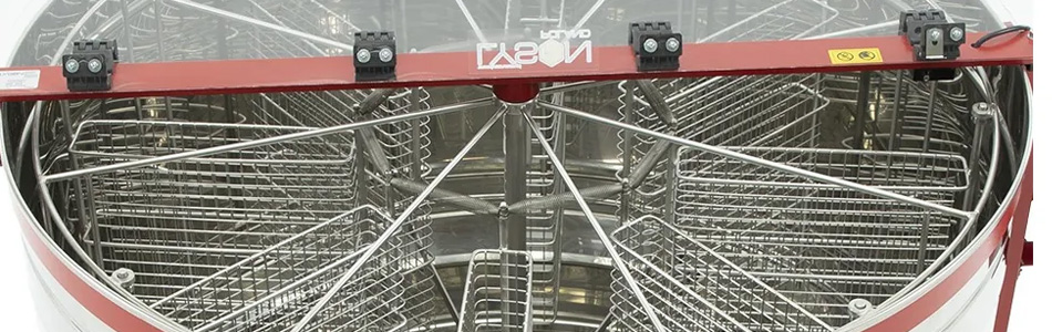Le panier est fabriqué avec des barres inoxydables solides résistantes aux acides (diamètre 3 et 5 mm) et équipé de 8 cassettes de dimensions 425×340 mm. La construction des cassettes est conçue pour maintenir les cadres en sécurité et minimiser le risque de casse des rayons. Les cassettes individuelles sont reliées par un système de ressorts qui assure un retour fluide à la position initiale. Pour un fonctionnement en douceur, le panier est monté sur roulements en deux points – en haut et en bas. Si nécessaire, des réducteurs peuvent être achetés séparément pour des dimensions de cadres plus petites.