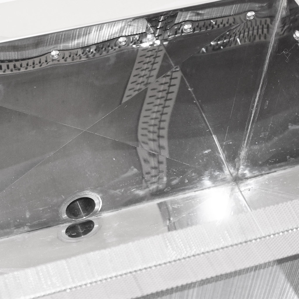Le design le plus récent des cuves augmente la variabilité d'utilisation. La cuve est divisée en quatre sections de taille égale, entre lesquelles vous pouvez disposer les tamis selon vos besoins (livré en standard avec trois tamis grossiers et deux tamis fins). Le couvercle est pratiquement divisé dans un rapport de 3/4 et 1/4, ce qui permet de couvrir toute la cuve ou de découvrir uniquement la section dans laquelle vous verserez le miel. L'ensemble comprend également des roulettes pratiques qui peuvent être facilement fixées au fond de la cuve pour une manipulation plus aisée. L'écoulement est assuré par une vanne à bille de 6/4.