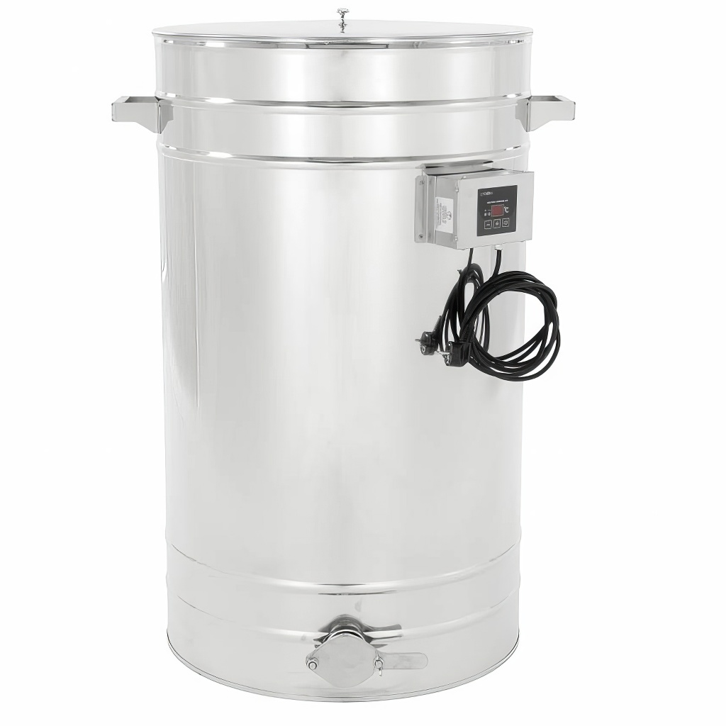 Cuve en acier inoxydable avec fond conique et chemise chauffante d'une capacité de 150 litres (ce qui correspond à environ 210 kg de miel) est un choix idéal pour les apiculteurs professionnels qui souhaitent optimiser le processus de clarification du miel.