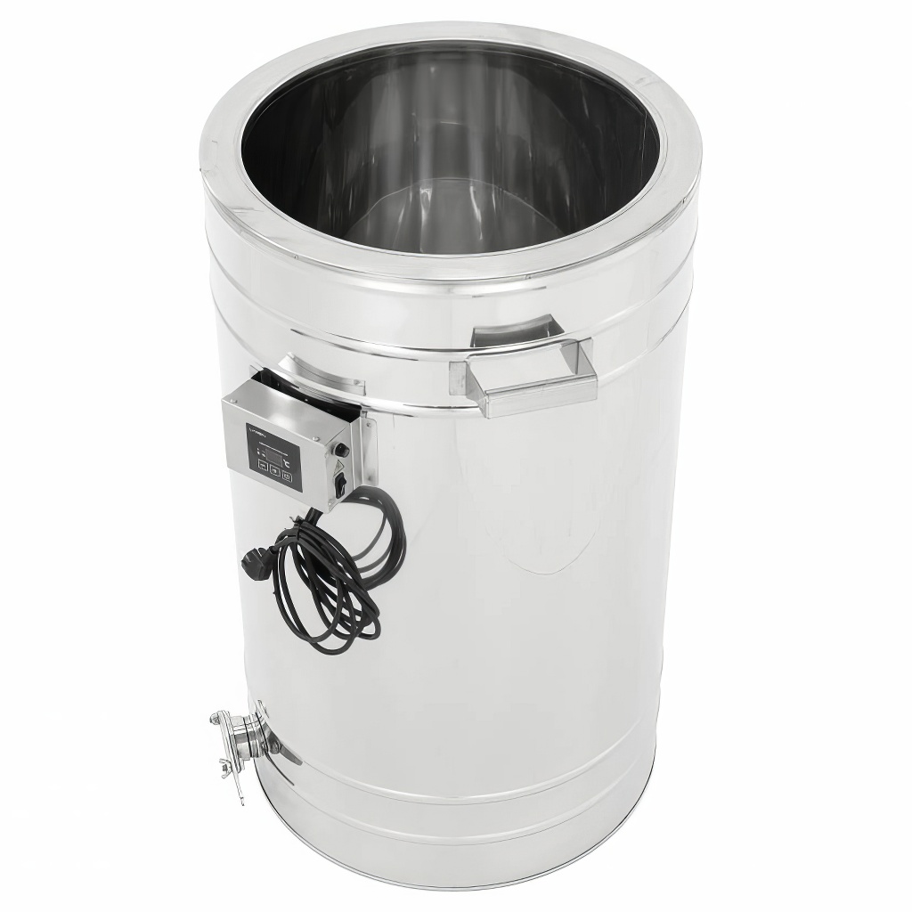 Le maturateur en acier inoxydable avec fond conique et paroi chauffante d'une capacité de 150 litres (ce qui correspond à environ 210 kg de miel) est un choix idéal pour les apiculteurs professionnels qui souhaitent optimiser le processus de clarification du miel. Il est fabriqué en acier inoxydable de la plus haute qualité et garantit non seulement la fiabilité, mais aussi un entretien facile pour une propreté impeccable.