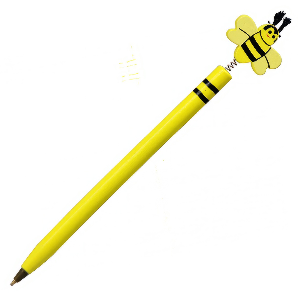 avec de l'encre bleue et une petite abeille sur le stylo. Longueur environ 19 cm