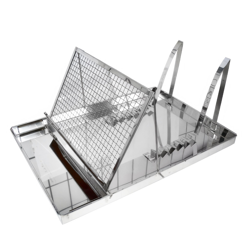 Plateau à désoperculer en acier inoxydable - grand modèle. Le plateau à désoperculer en acier inoxydable avec possibilité de déposer les cadres est un accessoire pratique qui vous facilitera considérablement le désoperculation ...