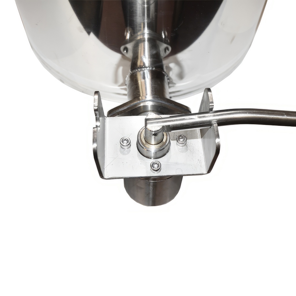 Robinet d'extraction de qualité en acier inoxydable avec système à piston, qui vous permet de le contrôler facilement à l'aide d'une pédale. Vos mains restent ainsi libres pour manipuler les pots. Cela vous permet de doser précisément la quantité de miel.