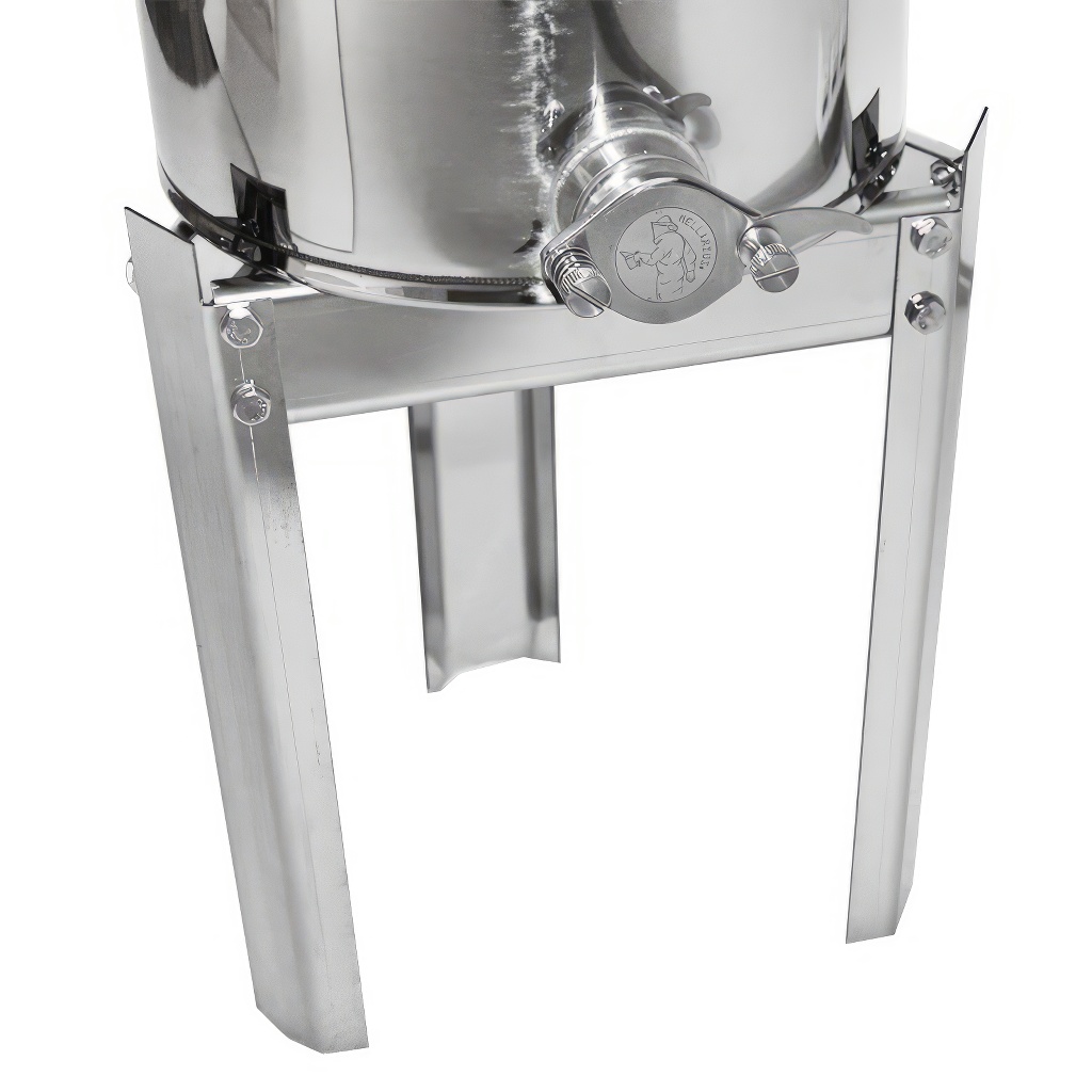 Support entièrement en acier inoxydable pour récipients d'un diamètre jusqu'à 31 cm. Support pour récipients de soutirage adapté aux produits des marques que nous proposons : H. Holtermann, Mellarius et Swiss Biene. Convient pour les récipients de 25 kg, 35 kg, 50 kg et les maturateurs de 25 kg (code : 5637) et 50 kg (code : 5641). En revanche, il ne convient pas aux récipients du fabricant Lysoň, pour lesquels nous proposons nos propres supports. La hauteur du robinet du récipient par rapport au sol est de 40 cm.