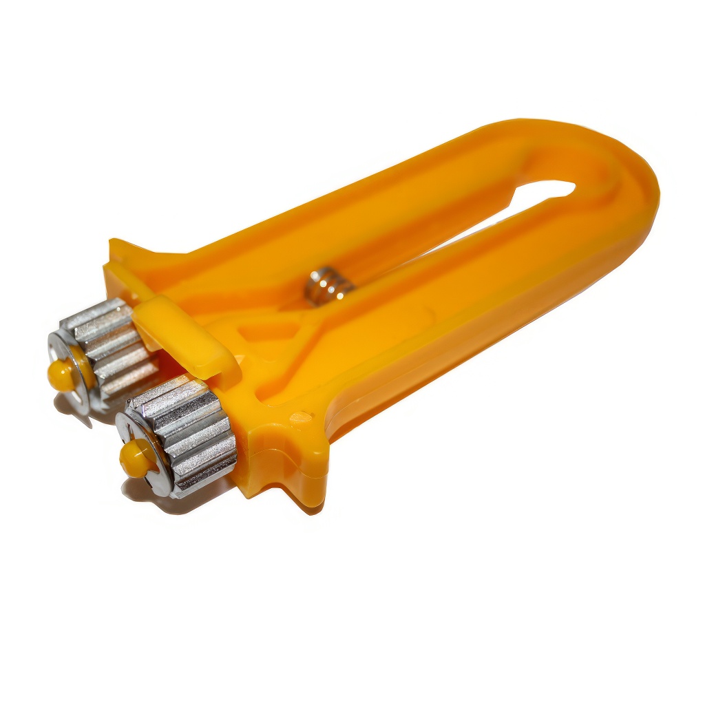 Vous utiliserez cet outil notamment dans la phase finale de préparation des cadres avant l'incrustation. L'ondulation et la tension sont assurées par des roues dentées métalliques de précision situées à l'extrémité de la pince. Il suffit d'insérer le fil entre les roues, de serrer la pince et de glisser doucement sur toute la longueur. Le corps est en plastique durci résistant – l'outil est léger en main, tout en étant suffisamment solide pour une utilisation à long terme. Choisissez un crêpeur de qualité du fabricant allemand de matériel apicole et préparez vos cadres pour que les cires gaufrées tiennent exactement là où elles doivent.